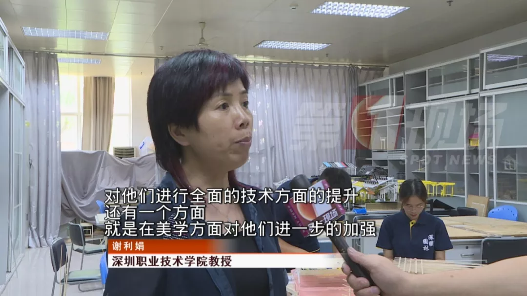 20號(hào)中午,在深圳職業(yè)技術(shù)學(xué)院的培訓(xùn)室,謝老師正在指導(dǎo)學(xué)生制作園林建筑的模型。這門技術(shù)不僅需要手巧,還要有藝術(shù)上的靈感和創(chuàng)意。