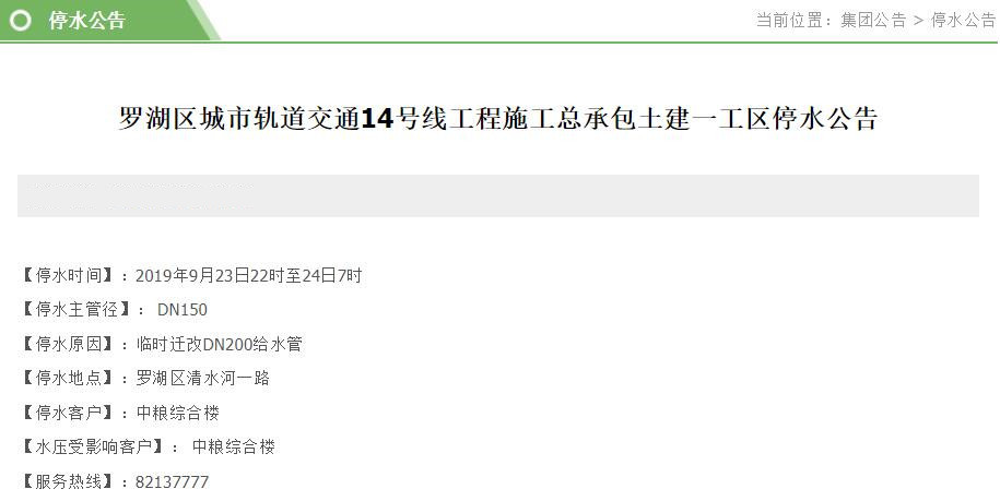 9月23-24日,福田南山羅湖多片區(qū)將停水,這些小區(qū)受影響