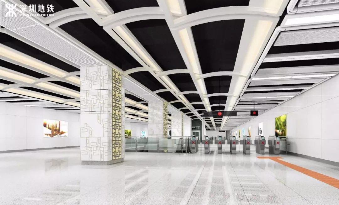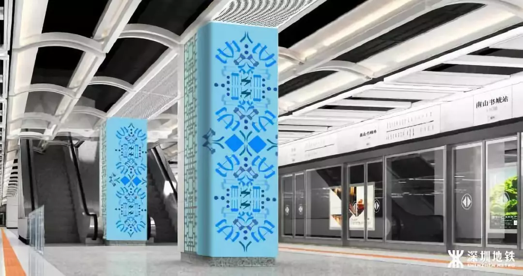 原9號(hào)線一期線路的裝修設(shè)計(jì)主題為“宜居生活”,體現(xiàn)的是深圳宜居生態(tài),綠色生活的概念,設(shè)計(jì)元素選取的是深圳嶺南及客家文化。
