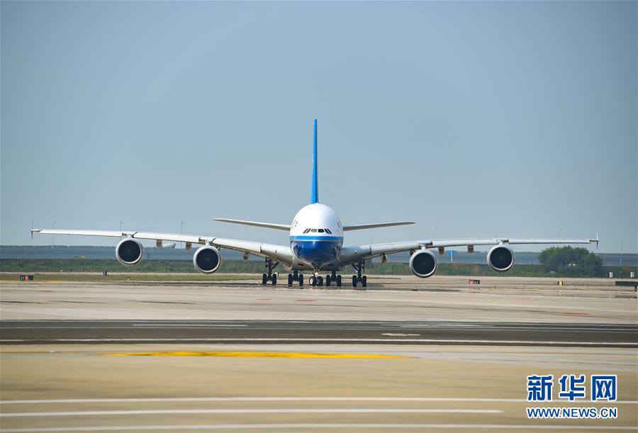 10月27日,南方航空空中客車A380客機(jī)抵達(dá)深圳機(jī)場(chǎng)。當(dāng)日下午,由全球最大寬體客機(jī)——空中客車A380執(zhí)飛的南航CZ3153次航班由深圳起飛前往北京,標(biāo)志著這款“空中巨無(wú)霸”機(jī)型重返深圳機(jī)場(chǎng)。南航曾在2014年5月開(kāi)始啟用A380執(zhí)飛京深航線,后因動(dòng)態(tài)運(yùn)力調(diào)配停飛。新華社記者毛思倩攝