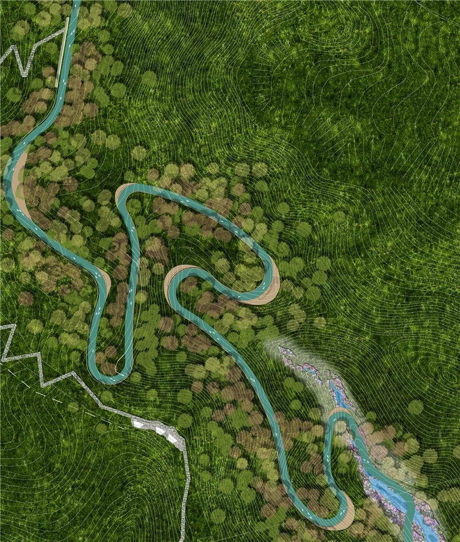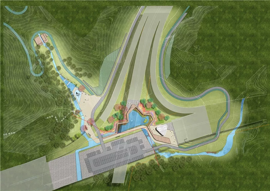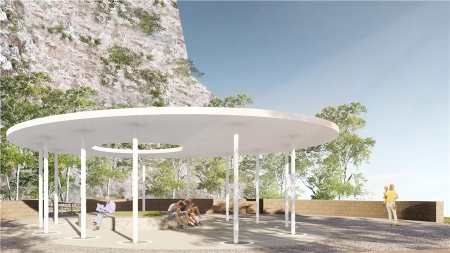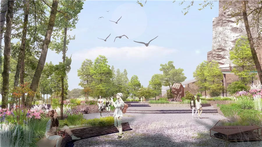 拼搏巖嶺的設計試圖恢復場地記憶,以石材結合銹板的形式塑造場地表達堅韌精神,同時保留現(xiàn)狀的巖生植物表達頑強拼搏的生命力。