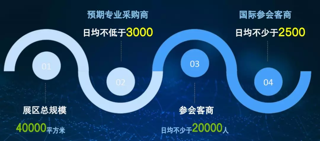 本次首展約有400家重點(diǎn)企業(yè)參展,預(yù)期專業(yè)采購商日均不低于3000家,參會(huì)客商日均不少于20000人次,其中國際參會(huì)客商日均不少于2500人次,將給會(huì)展中心帶來巨大的客流量和消費(fèi)量。