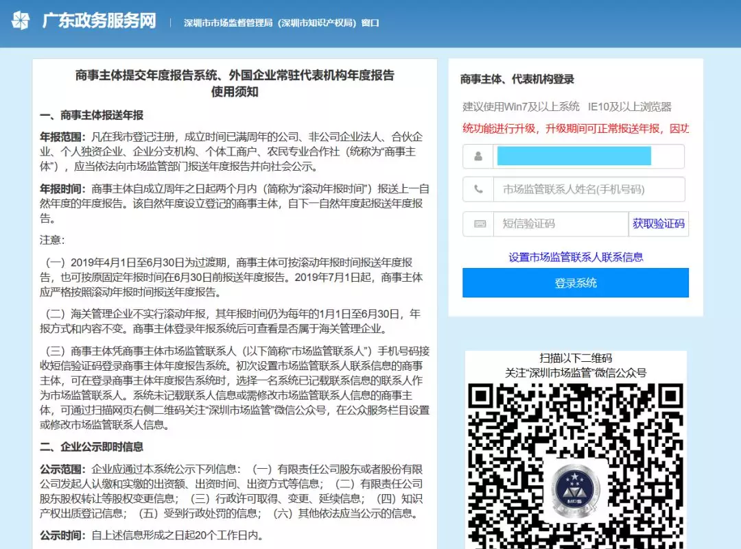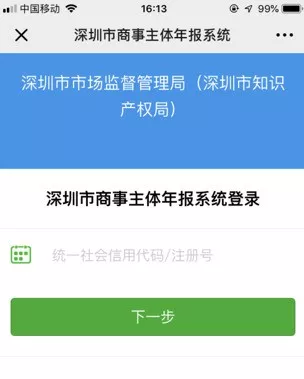 第一步:通過掃描新版營業(yè)執(zhí)照二維碼或進(jìn)入深圳市場監(jiān)管官微點(diǎn)擊“公眾服務(wù)”欄目下的“商事主體年報”進(jìn)入手機(jī)年報登錄界面。