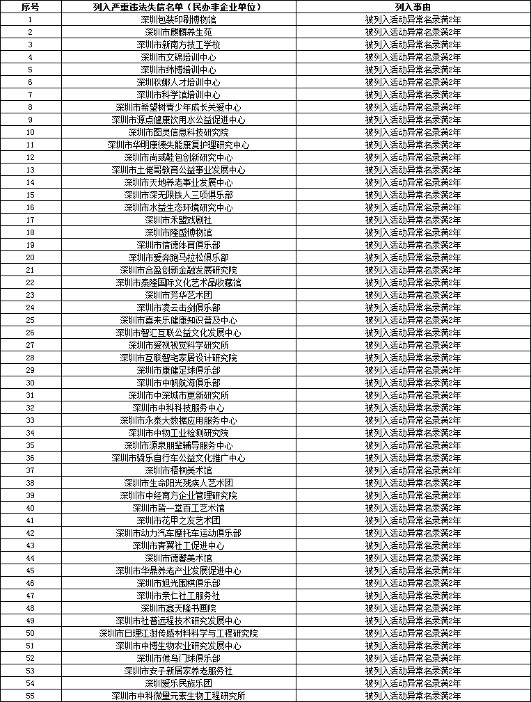 深圳市民政局公布一批嚴重違法失信名單