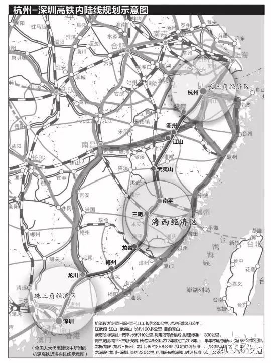去年,參加全國兩會(huì)的部分全國人大代表提出一份《關(guān)于將杭深高鐵近海內(nèi)陸線列入國家“十三五”現(xiàn)代綜合交通發(fā)展規(guī)劃修編和國家中長期鐵路網(wǎng)規(guī)劃的建議》。杭深高鐵近海內(nèi)陸線擬自杭州西經(jīng)衢州西-江山-武夷山-南平-三明-龍巖-梅州-龍川至深圳,總長約1200公里。
