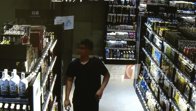 超市里偷酒嫌疑人被抓現(xiàn)行