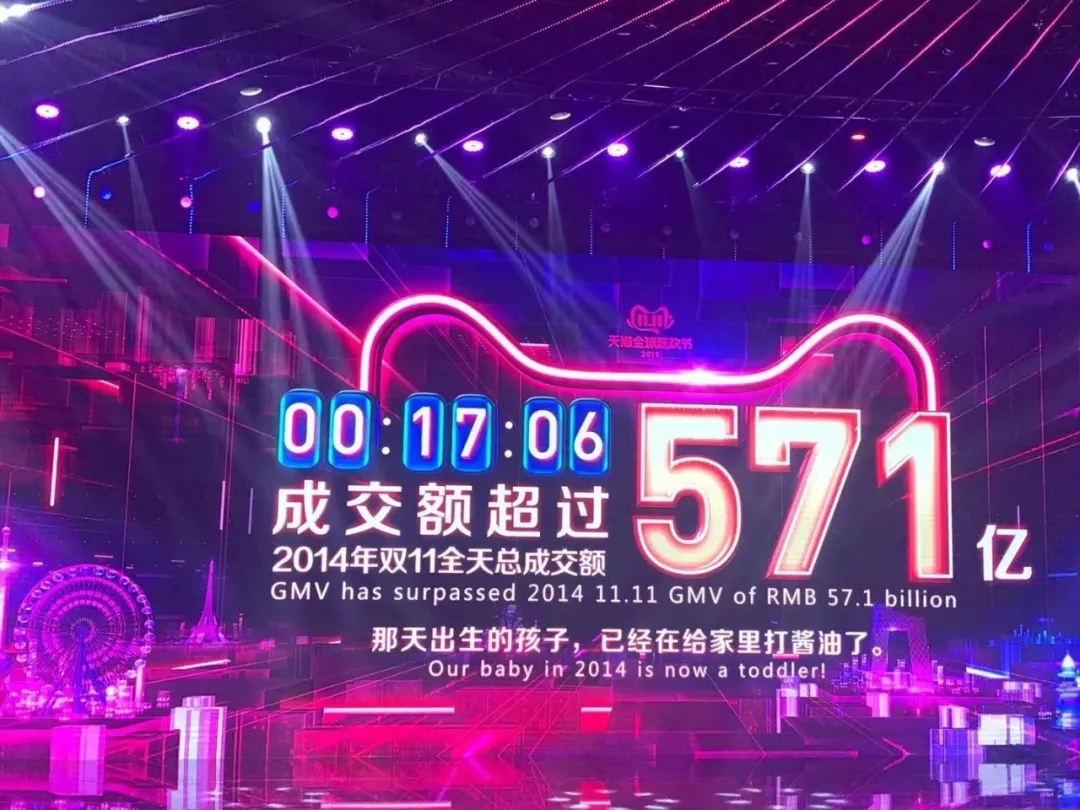 17分06秒,天貓雙十一銷售額突破571億元