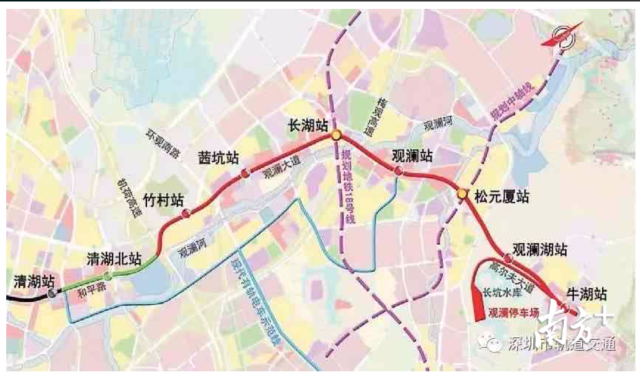 線路共設(shè)車站8座,分別為:清湖北站、竹村站、茜坑站、長(zhǎng)湖站、觀瀾站、松元廈站、觀瀾湖站、牛湖站,其中清湖北站為高架站。