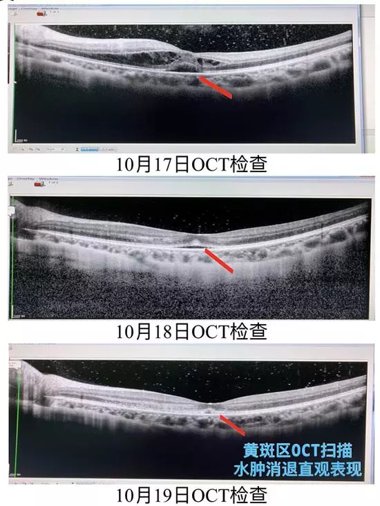 病房立即邀請眼科醫(yī)生會診,發(fā)現(xiàn)患者出現(xiàn)雙眼脈絡(luò)膜視網(wǎng)膜炎,左眼矯正視力僅剩0.3。經(jīng)過及時對癥治療,三天后,患者左眼視力由發(fā)病初的矯正視力0.3提高到矯正視力0.8,現(xiàn)視力還在進一步恢復中。