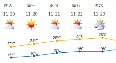 未來(lái)幾天天氣提示:本周前中期冷空氣影響氣溫明顯下降:受新一股冷空氣影響,周一午后至傍晚北風(fēng)開(kāi)始加大,最大陣風(fēng)7-8級(jí),夜間至周二氣溫明顯下降,周二早晨最低氣溫降至14-15℃;周三日白天風(fēng)力減弱;周四至周末晴天到多云,氣溫回升。港口碼頭及海上活動(dòng)注意防風(fēng);
