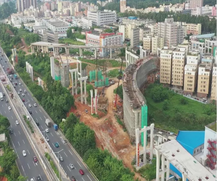 ▲國際低碳城互通立交施工