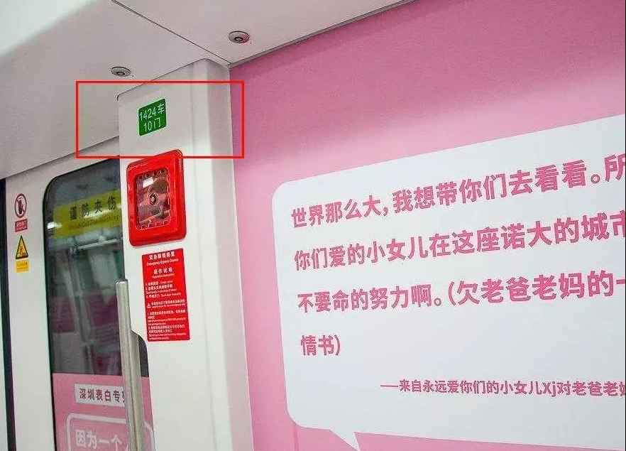 如果想要讓自己在車廂里的位置更精確些,除了掌握所看到的車廂編號外,可以留意一下車門編號,地鐵列車每一節(jié)車廂內(nèi)共有10個車門,車門編號一般以車廂為單位來設(shè)置,車門編號張貼在每扇車門的側(cè)上方。比如,“1424車10門”就是指你正位于1號線42號列車第4節(jié)車廂的10號門。