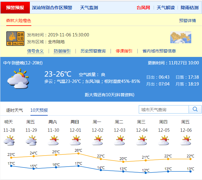 見圳客戶端·深圳新聞網(wǎng)2019年11月27日訊 記者從市氣象臺獲悉,27日夜間,新一股冷空氣將開始影響深圳,預(yù)計11月28-29日空氣持續(xù)干燥,早晚較涼,沿海、高地和海區(qū)陣風(fēng)6-7級;30日-12月1日,氣溫略有回升。