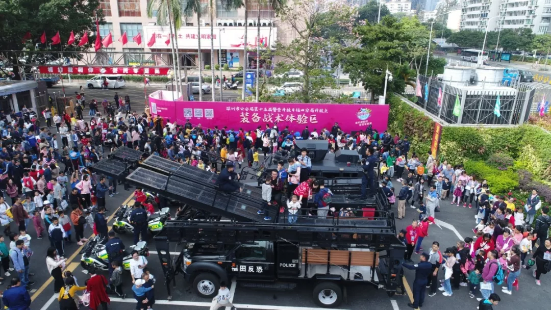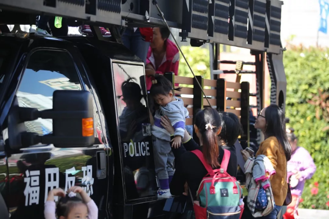 防暴頭盔、防爆盾牌、槍支警械、無(wú)人機(jī)、反恐車酷勁兒十足。大家興致勃勃地穿戴警用裝備,過(guò)一把警察癮,圓一回警察夢(mèng),做“圳”里最靚的仔!