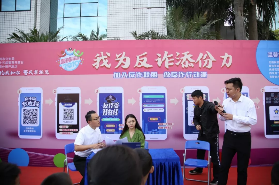 警民同心,全民防騙;人人反詐,共建平安!福田警察推出“反詐騙我在線”線上微程序,向廣大市民倡議誠(chéng)邀:加入反詐聯(lián)盟,一起為反詐騙代言,做反詐騙行動(dòng)派!相聲、小品等文藝表演的形式也搬上了反詐騙宣傳的舞臺(tái),以寓教于樂(lè)的方式提高了市民的防范意識(shí)。