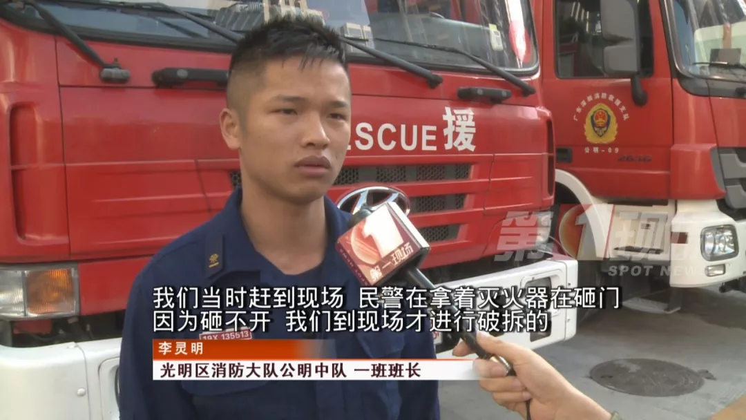 該戶人家用的是密碼鎖,可能是因?yàn)槭掳l(fā)緊急,再加上屋內(nèi)濃煙嗆鼻,女主人竟然一直說不準(zhǔn)房間大門的開鎖密碼,危急時刻,消防隊員及時趕到了現(xiàn)場。