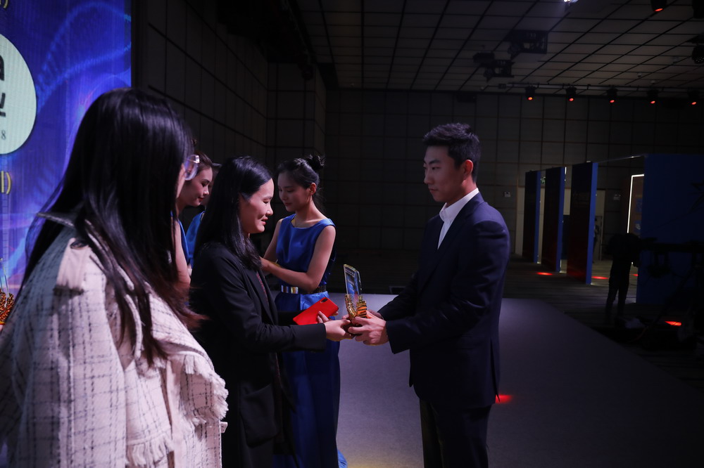 水貝珠寶集團(tuán)副總裁盧森榮為“房地產(chǎn)行業(yè)最受網(wǎng)民歡迎品牌”頒獎。