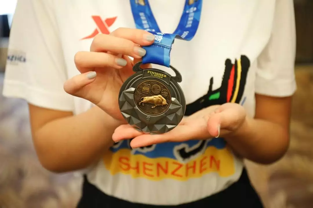 本次,2019深圳國際馬拉松完賽獎牌一直以來是跑者關注的焦點,完賽獎牌以龍崗大運體育中心建筑為主體,正面集中展示平安大廈、地王大廈、市民廣場等深圳市地標建筑,背面是由全國著名的藝術家潘鶴雕刻而成的拓荒牛雕像。拓荒牛粗獷雄偉,重心向前,堅韌不拔,是剛毅和力量的代表,象征深圳開拓進取的精神。