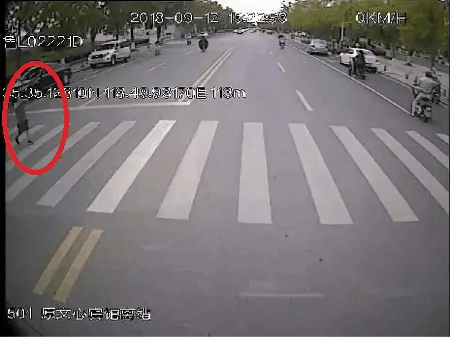 即將開(kāi)過(guò)一處沒(méi)有信號(hào)燈的斑馬線。