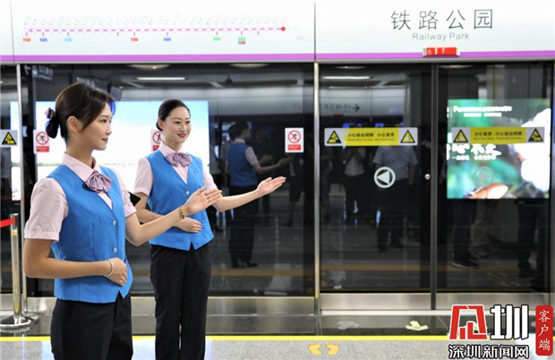 深圳地鐵5號(hào)線二期開(kāi)通首日,地鐵工作人員歡迎市民乘坐地鐵。