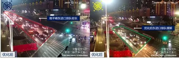西鄉(xiāng)大道與前進(jìn)二路口夜間信號(hào)燈優(yōu)化前后對(duì)比