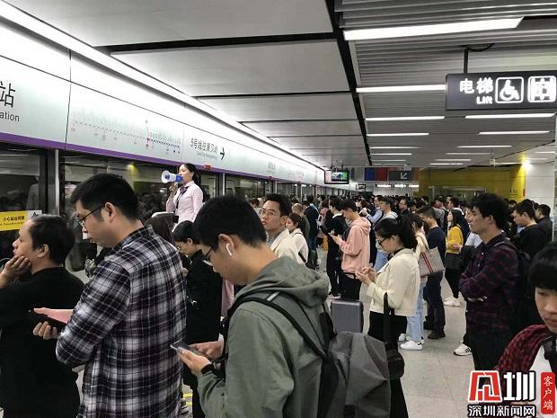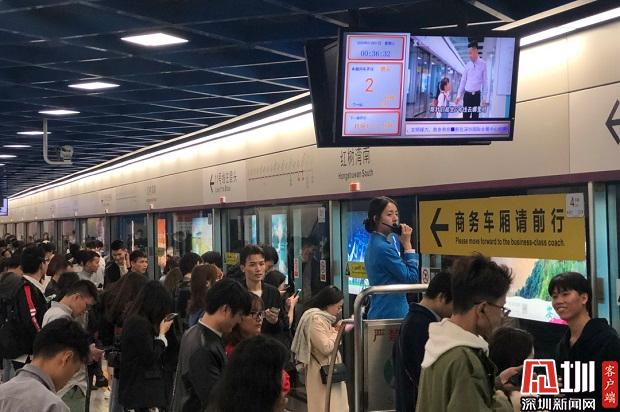 跨年夜深圳地鐵紅樹灣南地鐵站客流情況。