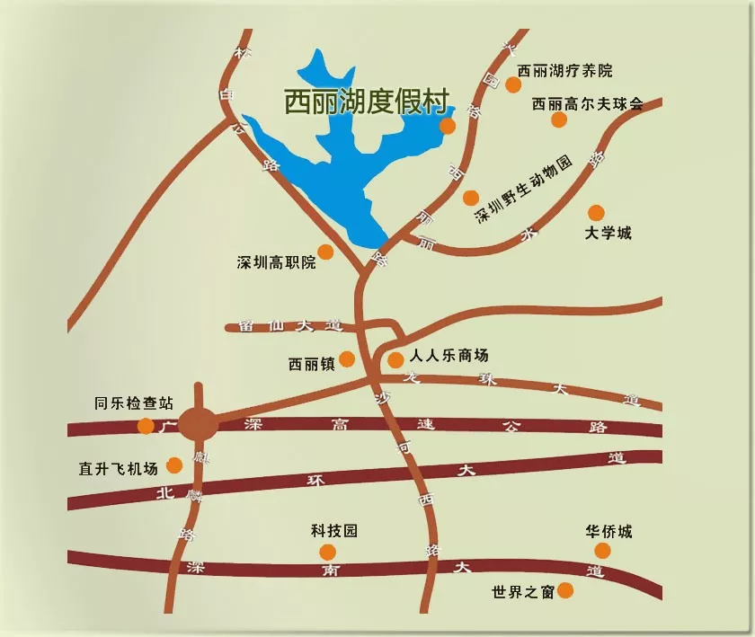 西麗湖度假村位于南山區(qū)西麗湖畔。擁有歌舞廳、高爾夫球場(chǎng)、釣魚中心、農(nóng)家樂等休閑設(shè)施,湖畔、村內(nèi)亭、廊、塔、寺各具特色。登上麒麟山,西麗湖美景盡收眼底。