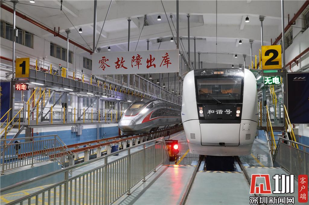 新春走基層|探秘春運里的深圳動車所 高鐵列車排隊"體檢""洗澡"