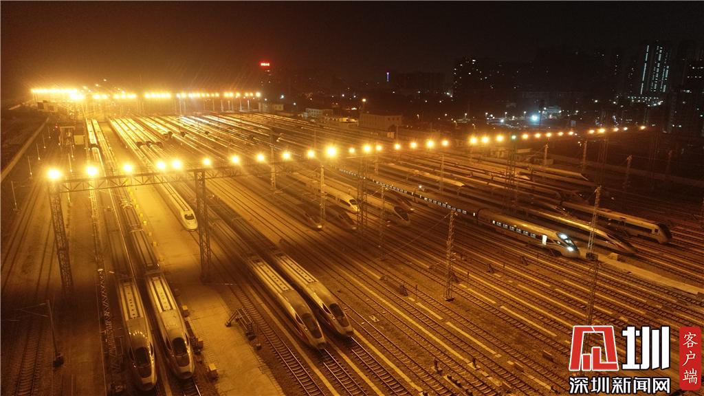 1月15日凌晨,深圳動車運用所內(nèi)的高鐵列車。