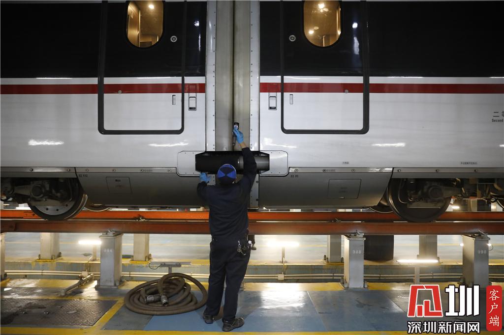 新春走基層|探秘春運(yùn)里的深圳動(dòng)車所 高鐵列車排隊(duì)"體檢""洗澡"