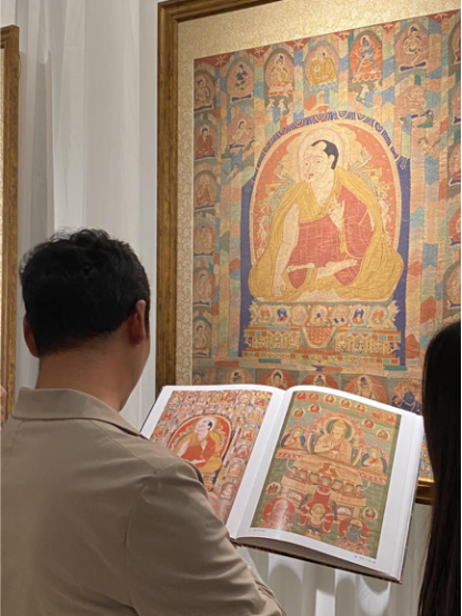 為了讓觀眾更好地了解本次展出唐卡的工藝美及其背后所蘊(yùn)含的人文價(jià)值,桂心堂主人邀請(qǐng)了布達(dá)拉宮唐卡專家——次仁占堆老師、曾長(zhǎng)期生活于蘇州的資深唐卡愛(ài)好者葉小龍,一同在1月4日的下午,給觀眾們帶來(lái)了一場(chǎng)深入淺出的導(dǎo)覽活動(dòng)。