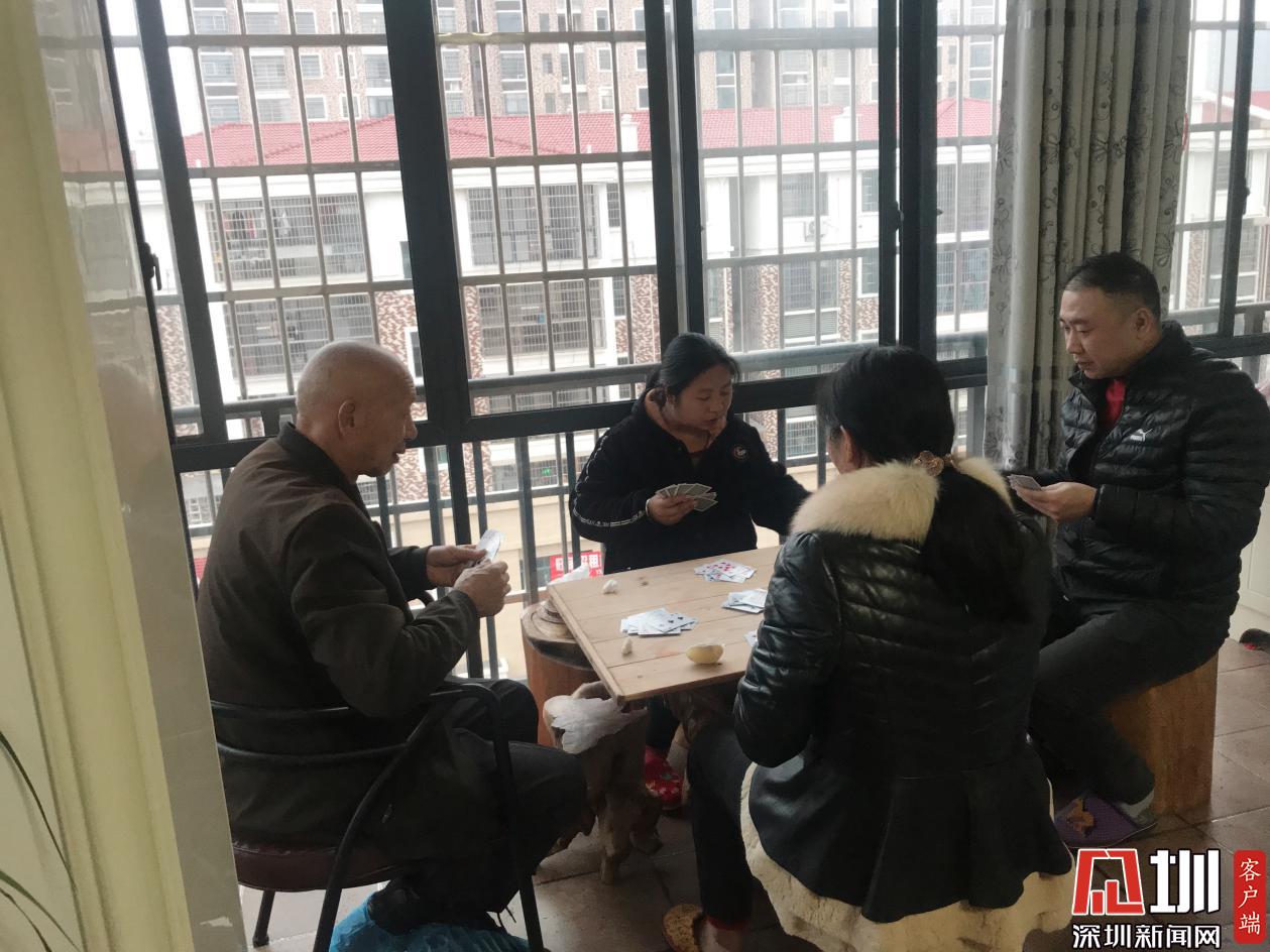 春節(jié),意味著團(tuán)圓。親戚們從五湖四?;氐郊亦l(xiāng)和親人們團(tuán)聚,歡度春節(jié)。在玩撲克牌。