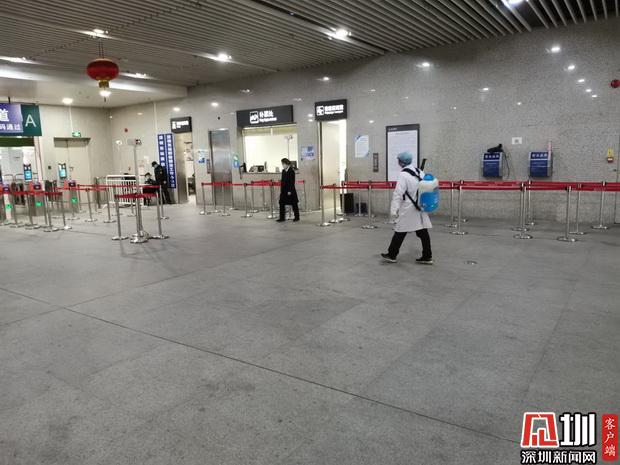 深圳火車(chē)站工作人員對(duì)候車(chē)室、站臺(tái)等區(qū)域進(jìn)行消殺。