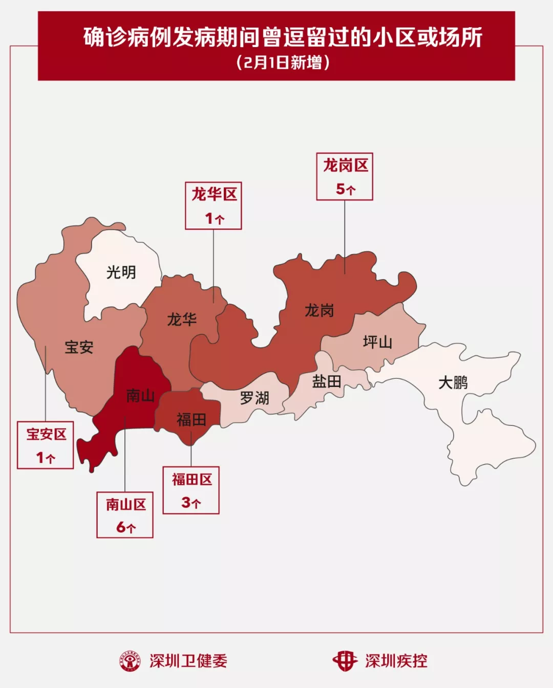 深圳的“新型肺炎”確診病例仍在不斷增加,截至2月1日24時,累計確診196例。 2月1日,疾控專業(yè)人員通過最新的流行病學調查確認,深圳新確診病人在出現(xiàn)病征期間逗留過的小區(qū)或場所,增加了16個。 請這些小區(qū)的居民不要擔心,各相關部門比你還緊張,已經(jīng)第一時間對病毒進行了“圍剿”—— 該治療的治療:確診患者已轉到深圳市第三人民醫(yī)院治療; 該隔離的隔離:密切接觸者已通過流行病學調查被找到,全部接受社區(qū)基層防控工作小組“三位一體”的隔離醫(yī)學觀察和管理; 該消毒的消毒:疾控工作人員已經(jīng)對病人住所和公共區(qū)域進行了終末消殺,并為小區(qū)的日常消毒提供了專業(yè)指導。 各位居民只要跟足政府和社區(qū)的指引,做好日常預防即可,無需“草木皆兵”。等病人康復出院了,他們還是我們的好朋友、好同事、好鄰居。 南山區(qū)(6個) 西海灣花園 后海雅園 雍景軒賞湖閣 桑泰丹華府三期 佳兆業(yè)前海廣場 陽光華藝大廈B座 龍崗區(qū)(5個) 回龍埔萬科翰鄰城 大族河山 華創(chuàng)云軒B座 秀麗山莊 中央悅城 福田區(qū)(3個) 福華路維也納酒店 八卦四路意馨居 景田天健花園 龍華區(qū)(1個) 春華四季園 寶安區(qū)(1個) 萬象新天2期 1月29日新增23例 1月30日新增24例 1月31日新增60例 2月1日新增26例 近日深圳新報告的確診病例數(shù) 似乎有點多 病例數(shù)的快速增加,其實有一個很重要的原因是深圳的檢測能力和效率在快速提高。 復旦大學附屬華山醫(yī)院感染科張文宏教授曾指出,從臨床來看,病例數(shù)的增加受三個因素的決定,即患病人數(shù)、構成比(這些人都是干什么的)、當?shù)貦z測出來的力度多大。在病毒研究領域有一句名言,“沒有檢測就沒有傳染病”。 深圳市衛(wèi)健委主任羅樂宣介紹,最近幾天深圳的病原體檢測機構數(shù)量已大幅“擴容”,從原來只有深圳市疾控中心和深圳市三醫(yī)院2家,迅速擴大到28家。 與此同時,近日廣東省疾控中心已正式將病毒篩查的確診權限下放到深圳市疾控中心。這意味著,深圳在進行確診工作之前,不必再將樣本送到廣州復核。 這一系列措施都使深圳確診的過程更快、效率更高。 資料來源:深圳市疾控中心、深圳市衛(wèi)健委