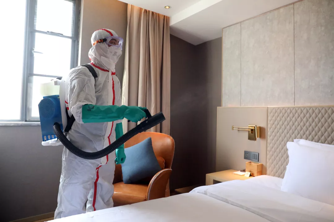 ▲疾控人員對(duì)病人住所進(jìn)行終末消毒