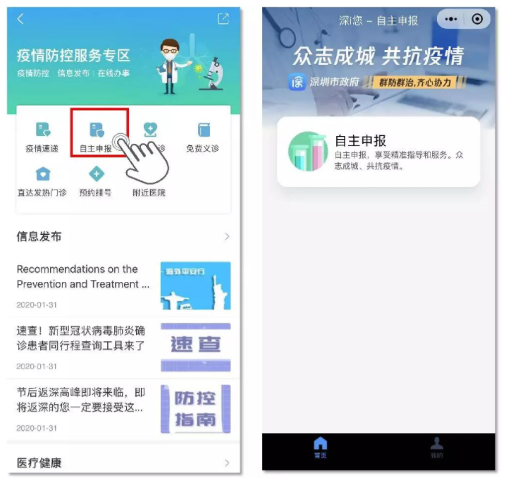 1、微信搜索欄:在微信搜索欄直接搜索“深i您-自主申報(bào)”,按照頁面提示如實(shí)填寫相關(guān)信息即可;