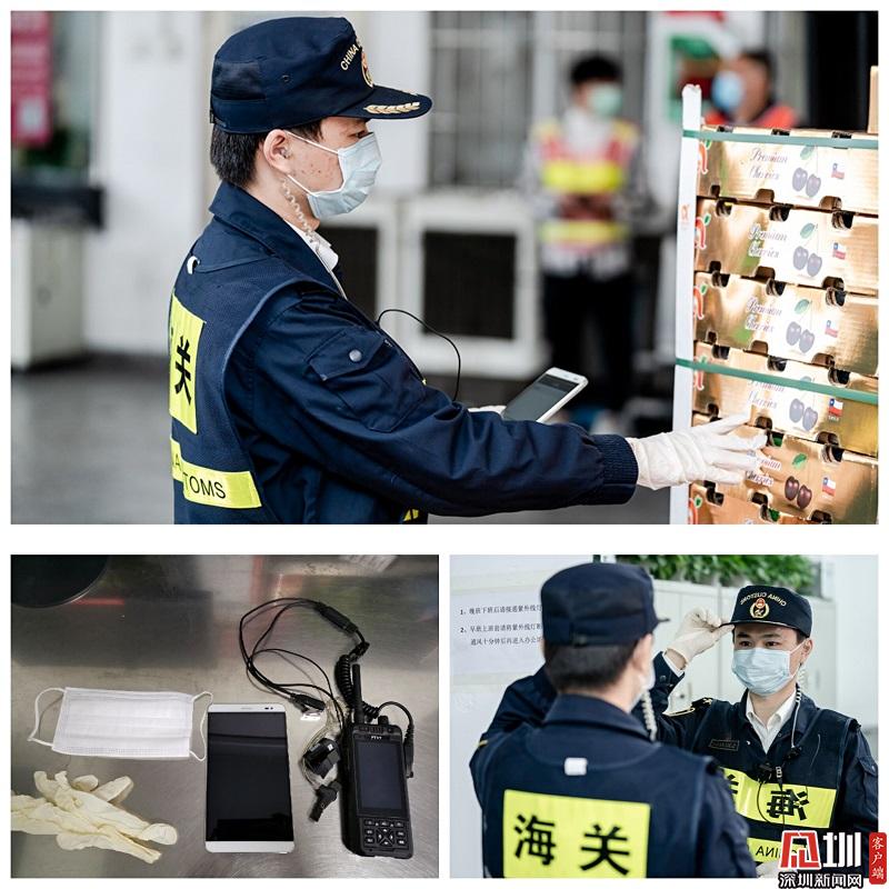 在文錦渡海關(guān)上班的祝子默開始了他上崗的一天。在接受了口岸監(jiān)管場的體溫檢查后,他戴上口罩和手套,裝配上海關(guān)查驗(yàn)單兵設(shè)備,對進(jìn)口水果實(shí)施查驗(yàn)。