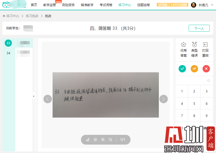 除了備課、上課外,如何及時(shí)完成布置作業(yè)、批改作業(yè)的工作也是線上授課的一個(gè)挑戰(zhàn)。深圳中學(xué)提前布局,配套了線上的智能教學(xué)系統(tǒng),讓同學(xué)們每天在線上完成作業(yè),從課后練習(xí)的角度保證了教學(xué)質(zhì)量。課后教師們通過學(xué)校的智能教學(xué)平臺批改同學(xué)們的作業(yè),并通過微信等方式回答學(xué)生的問題。