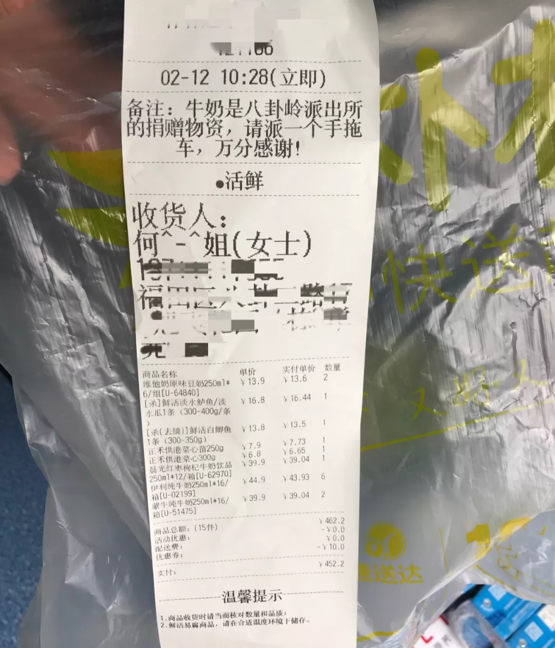 2月12日上午,一名群眾來到深圳市公安局福田分局八卦嶺派出所門口,送上防疫慰問物品。民警問及其姓名和聯(lián)系方式時(shí),她只說:“民警的辛苦我們都看在眼里,這是我作為一名市民的心意和謝意?!北戕D(zhuǎn)身離開了。民警在清點(diǎn)紀(jì)錄物資時(shí),無意中發(fā)現(xiàn)了該熱心市民訂購物資的一張采購單,八卦嶺派出所全體警務(wù)人員在這里對(duì)不肯留名的何女士表示衷心的感謝!疫情無情、人民有情,溫暖警心、堅(jiān)定前行!