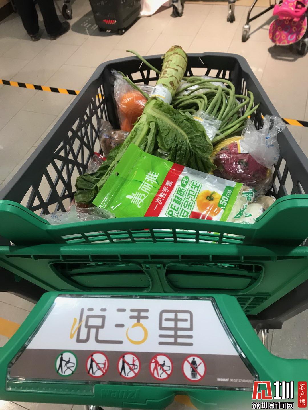 呂女士在萬達廣場超市里采購的新鮮蔬菜水果。