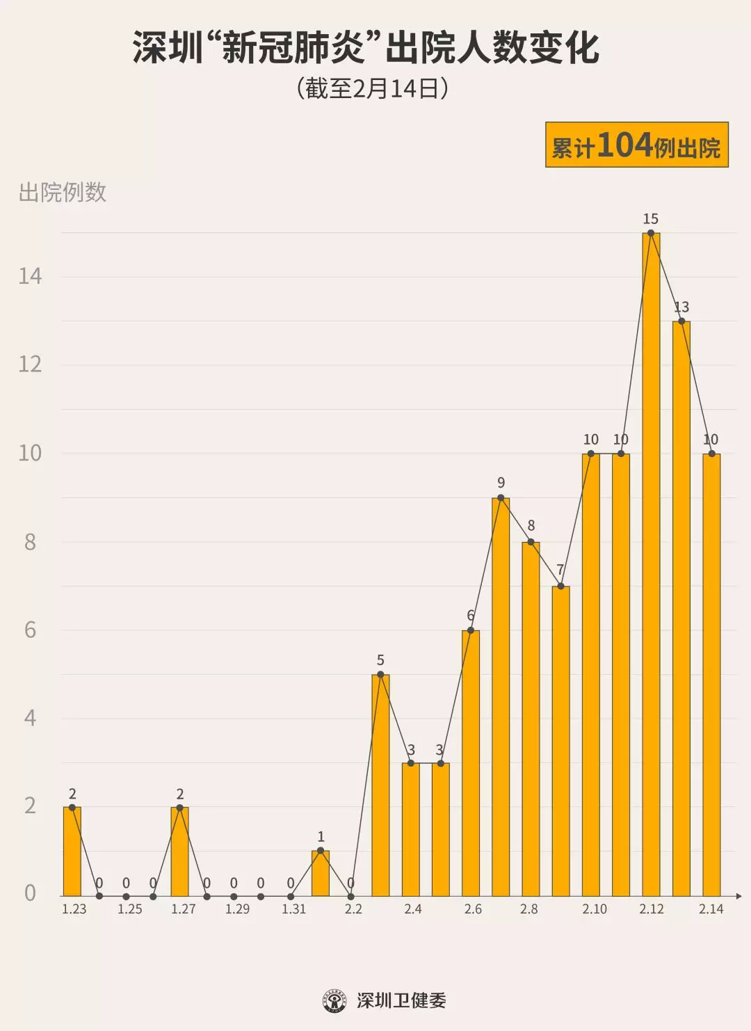 2月14日下午,經(jīng)專家組會診,深圳再有10名新型冠狀病毒肺炎確診患者出院,累計達104人。