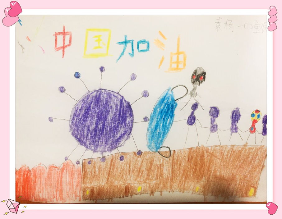 有一天楊婷下班回到家中,看到桌上袁楊在白紙上寫的“醫(yī)生加油,中國(guó)加油”,袁楊說(shuō)他在電視里看到別人為中國(guó)加油的視頻,所以自己也做了個(gè)小標(biāo)語(yǔ),想和電視里的哥哥姐姐一樣為戰(zhàn)斗在防疫一線的醫(yī)護(hù)人員加油。