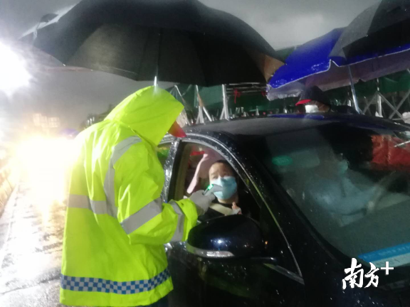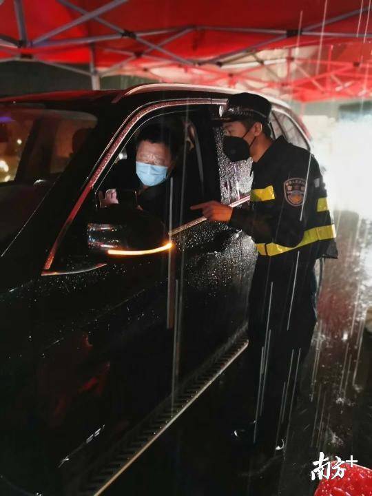 龍城街道黨員干部、工作人員與龍崗區(qū)退役軍人義工隊(duì)、龍崗交警組成防控隊(duì)伍,借助現(xiàn)場(chǎng)高速雨棚的遮擋,對(duì)進(jìn)深車輛一一進(jìn)行排查。