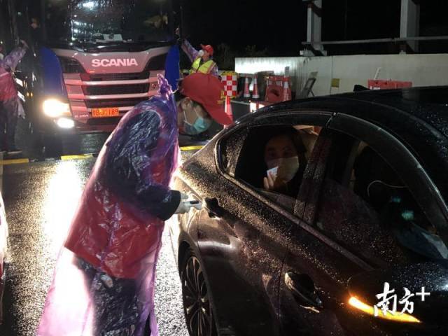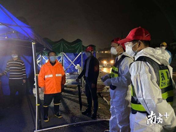 坪地街道黨工委書(shū)記曾憲旺冒雨夜巡檢查點(diǎn),了解當(dāng)日車流量以及重點(diǎn)區(qū)域人員返深情況,同時(shí)慰問(wèn)一線執(zhí)勤人員及志愿者。