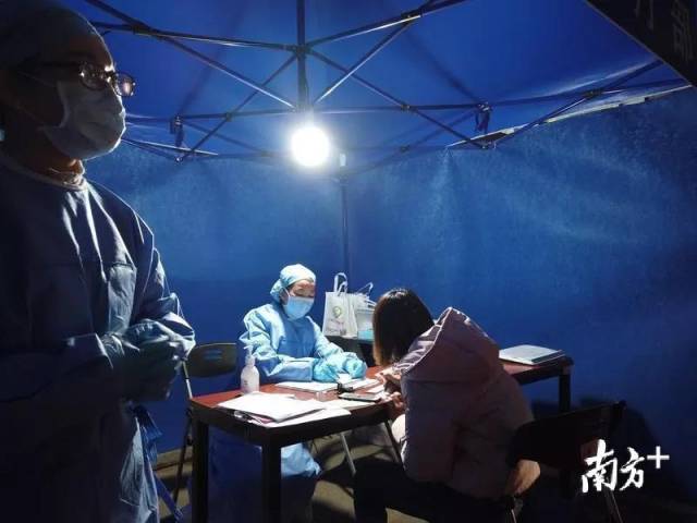 龍崗區(qū)坪地街道黨員干部和工作人員深夜冒雨開(kāi)展疫情檢查?!?/p>