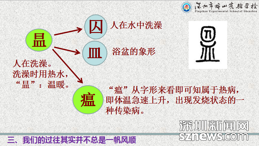 坪山實(shí)驗(yàn)學(xué)校校長安國強(qiáng)校通過“說文解字”的形式生動講解了“瘟”與“疫”的字義,讓大朋友和小朋友們都理解了瘟疫爆發(fā)時(shí)的可怕性與嚴(yán)重性。他還從歷史的角度讓同學(xué)們了解人類與自然災(zāi)害斗爭的過往。