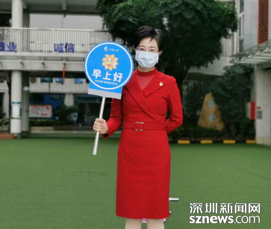 今日的“開學(xué)典禮”雖不同往日,校園里空蕩蕩,沒有師生的到來,但寶安區(qū)濱海小學(xué)的校園門口依舊出現(xiàn)了一個(gè)熟悉的身影,她用這種特殊的方式迎接孩子們開學(xué)的第一天,“早上好”“你真棒”,這溫情的話語是李桃輝校長給每一位師生的問候。