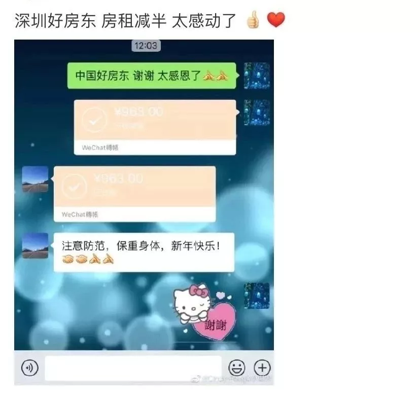 C******a:我有一位龍崗朋友是房東,他們給所有租客都減免了半個月的房租。暖心感動!