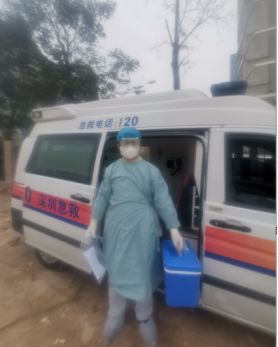 ▲傅偉去寶安區(qū)疾病預(yù)防控制中心運送新冠肺炎檢測標(biāo)本。