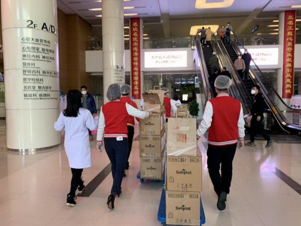 蔡麗麗與堅守營運一線的伙伴們?yōu)榭挂咭痪€的醫(yī)護人員送去愛心餐食。